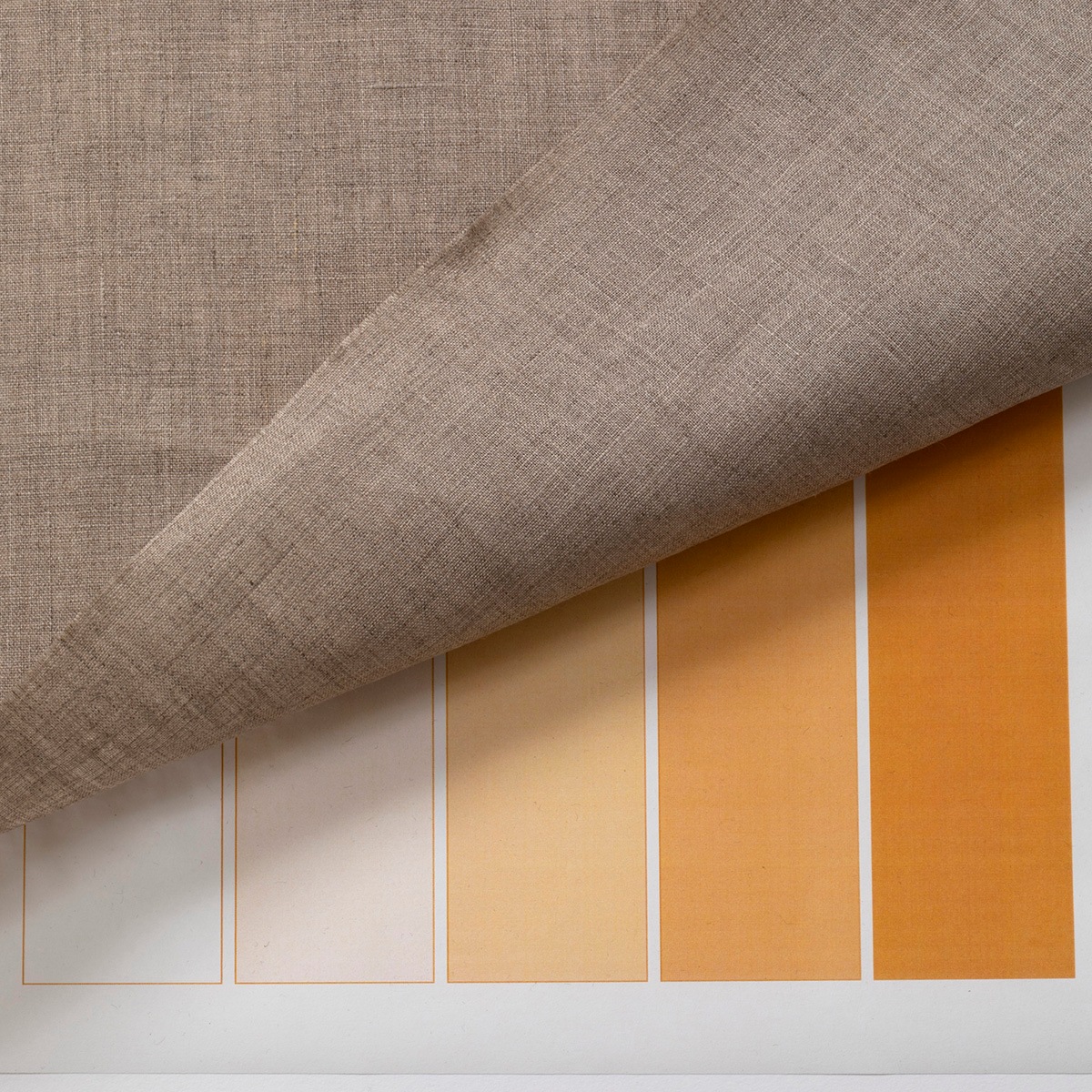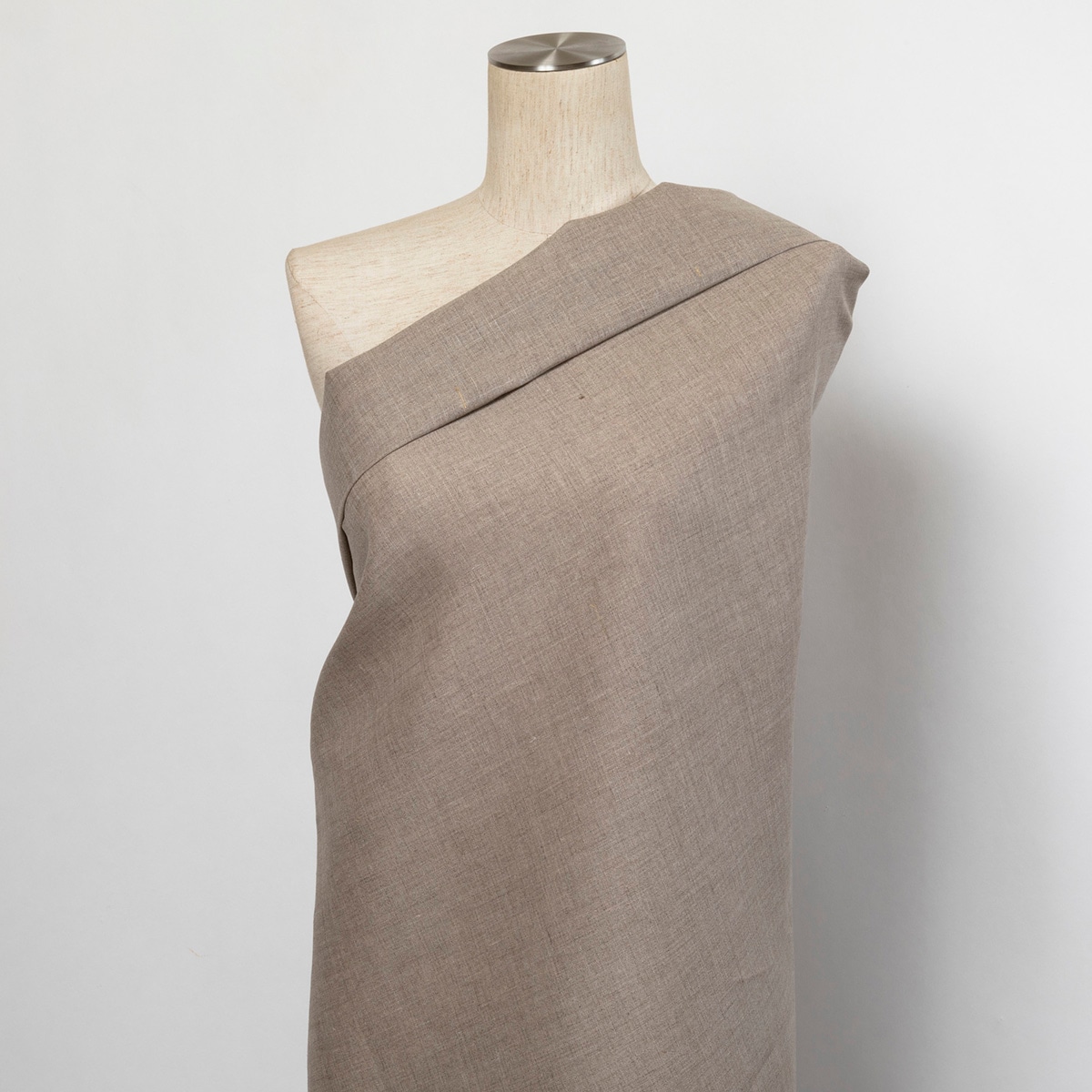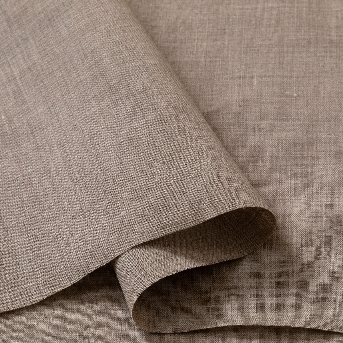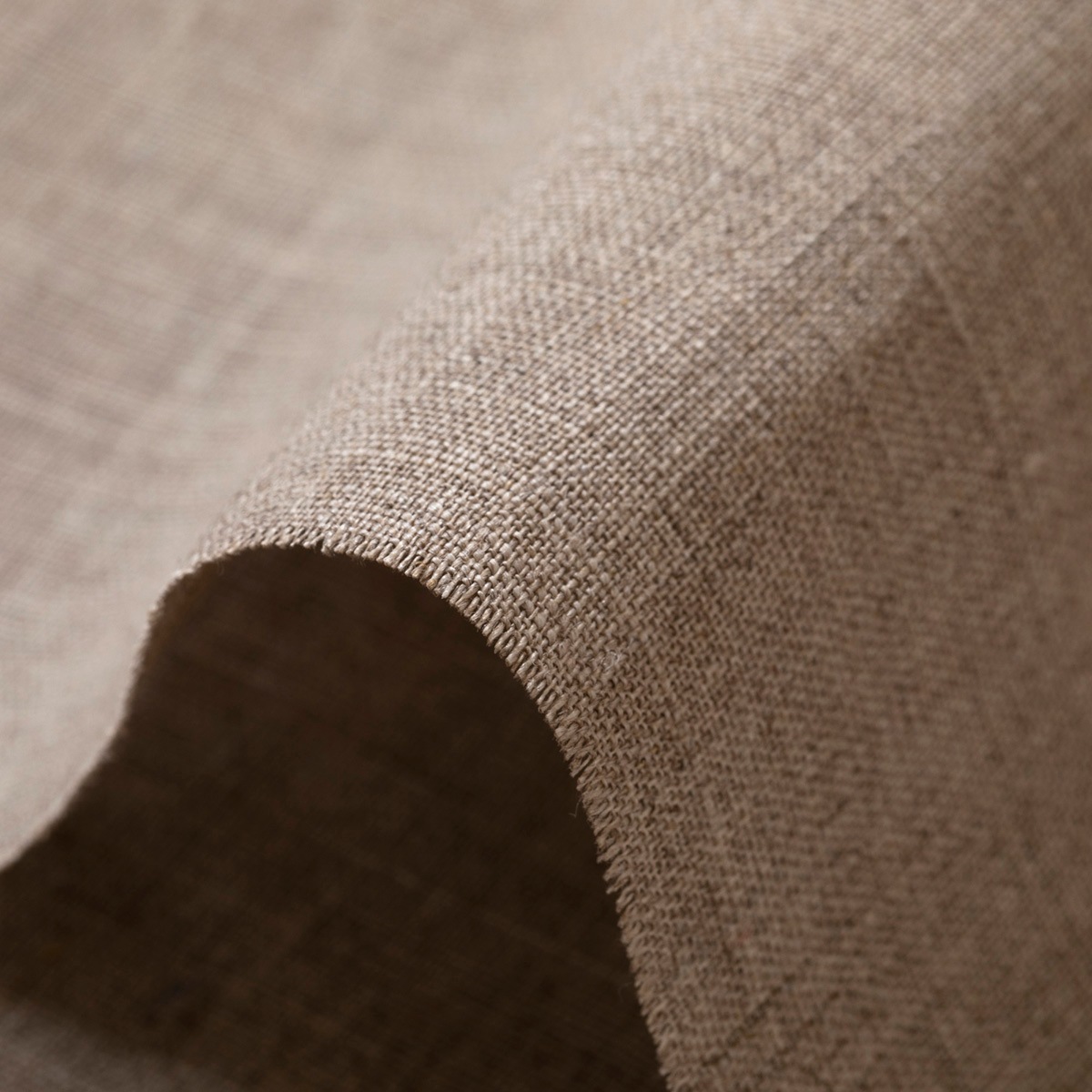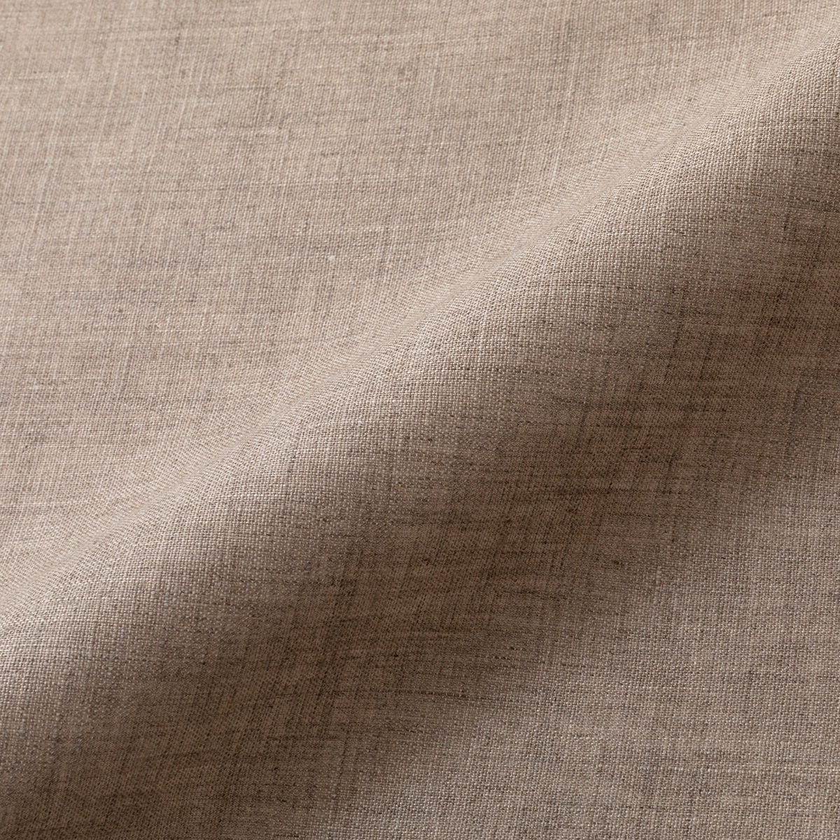 リネン100%、未晒しでグレイッシュなナチュラルカラー(リネンの生成り色)の平織り生地です。