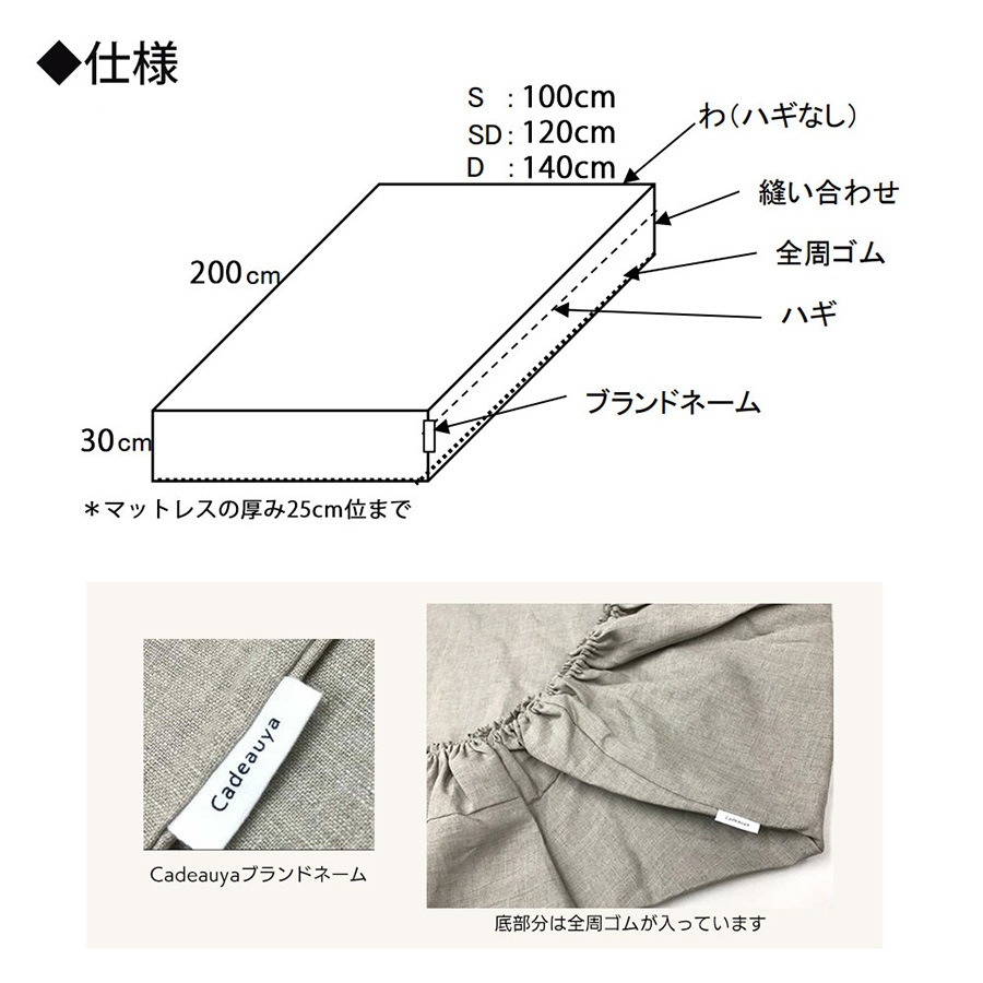 リネン ボックスシーツ スタンダード セミダブル Cadeauya
