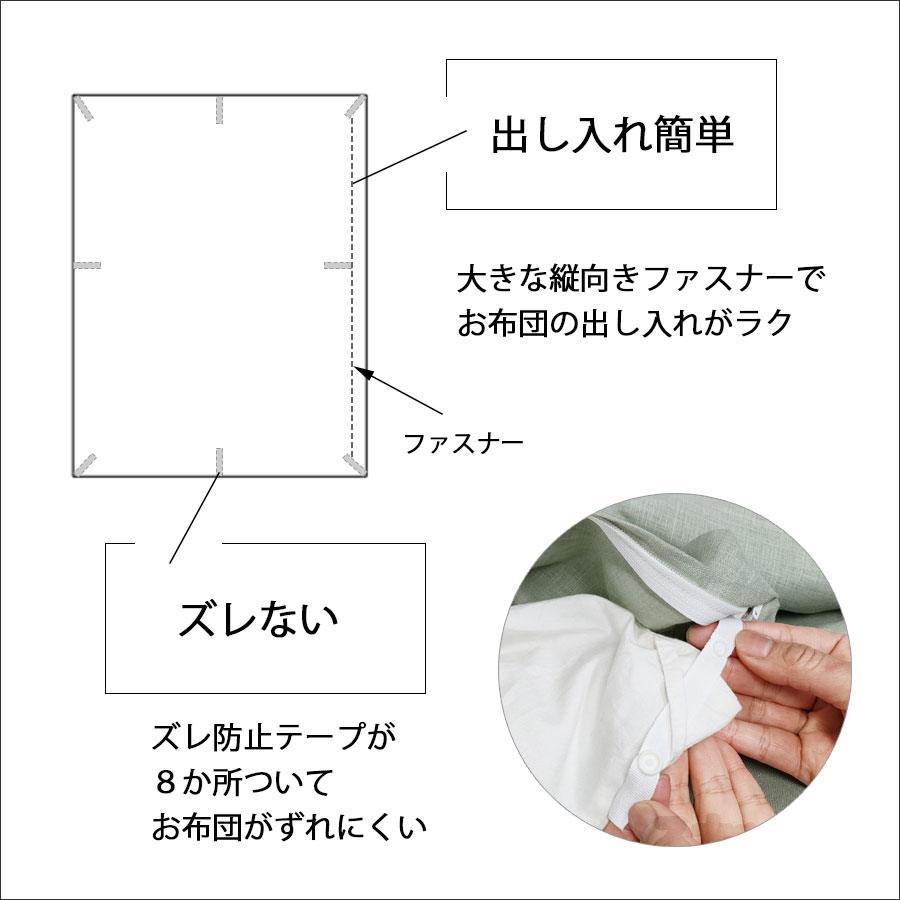細番手(55番手)のリネン糸を使用し、優しい肌触りに仕上げたリネン100%の掛けふとんカバーです。