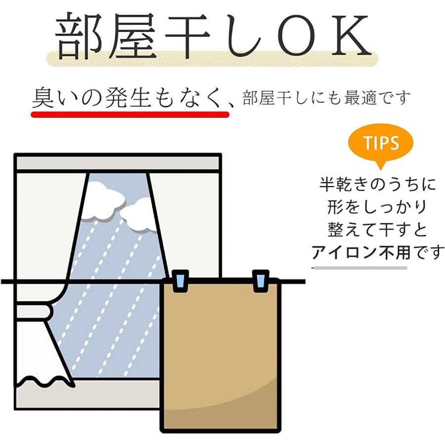 - 吸水性・速乾性に優れており、においの発生もなく、部屋干しにも最適です。