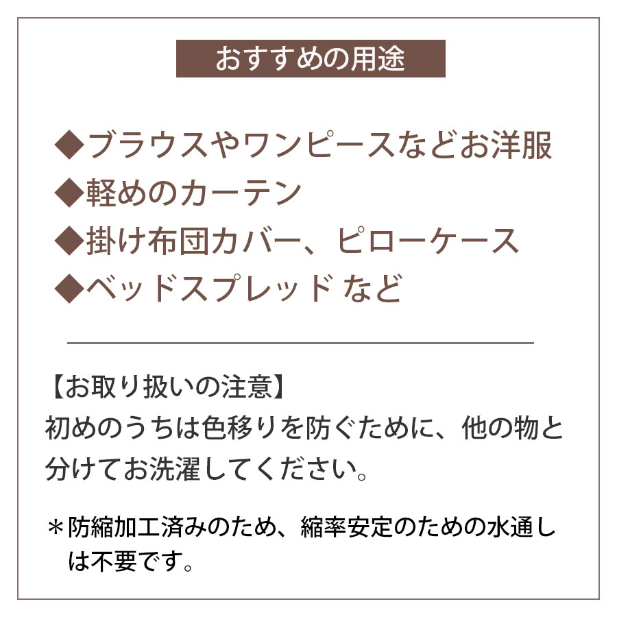 - 価格は1メートル単位の価格です。数量「2」としていただいた場合、2mの連続した生地が届きます。 1メートル未満のご注文には対応しておりません。