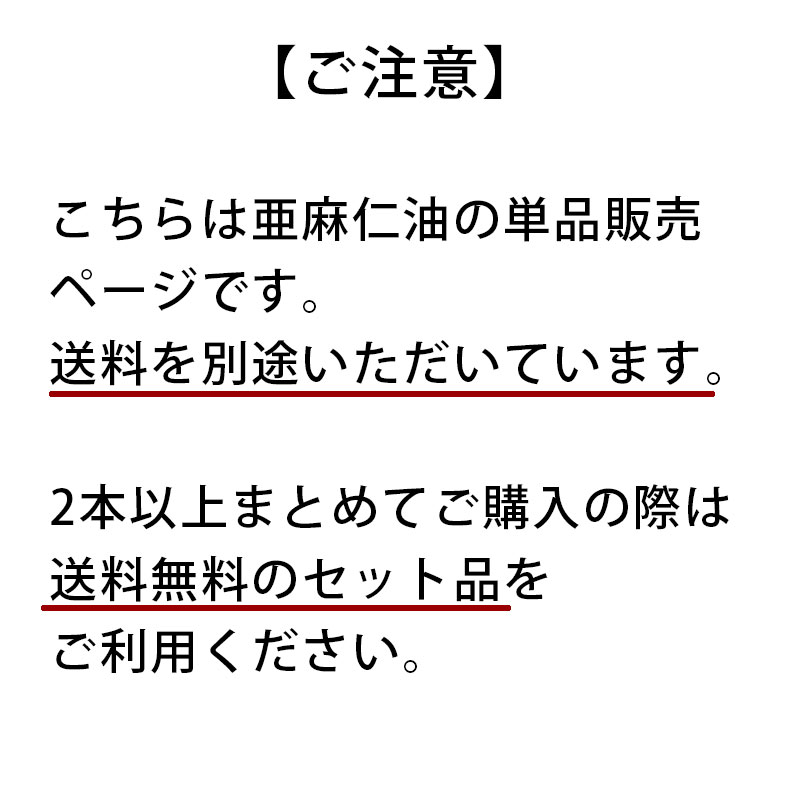 こちらは亜麻仁油単品の販売ページです。別途送料をいただいております。