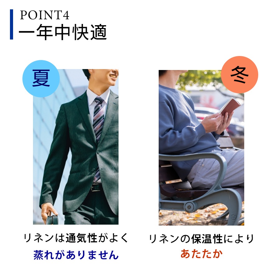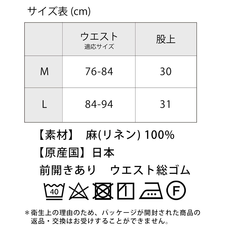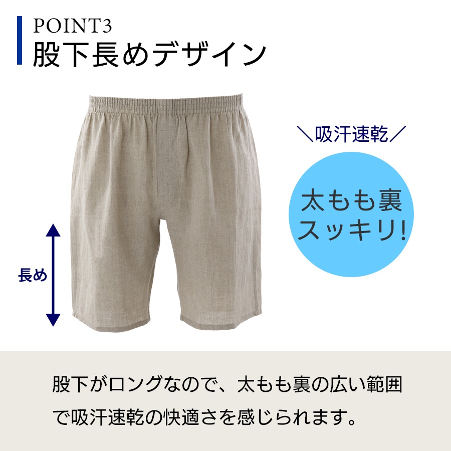 通気性がよいリネンが、汗を素早く吸収してすぐに発散 いやな下着のへばりつきが気になる方におススメです。