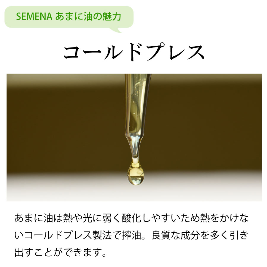 SEMENAあまに油は、圧搾後に浮かび上がる上澄みだけを使用した“未精製”タイプ。 未精製ならではの濃い黄金色が特徴で、自然そのままの風味・栄養をしっかり味わえます。