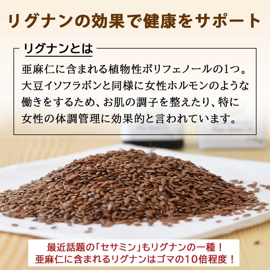 亜麻の種に含まれる活性酸素を中和させる効果のあるリグナンを、バランスよく配合したリグナン入りのタイプ。また、リグナンは過酸化脂質の抑制に効果があるので、健康志向の方におすすめです。よく振ってお召し上がりください。