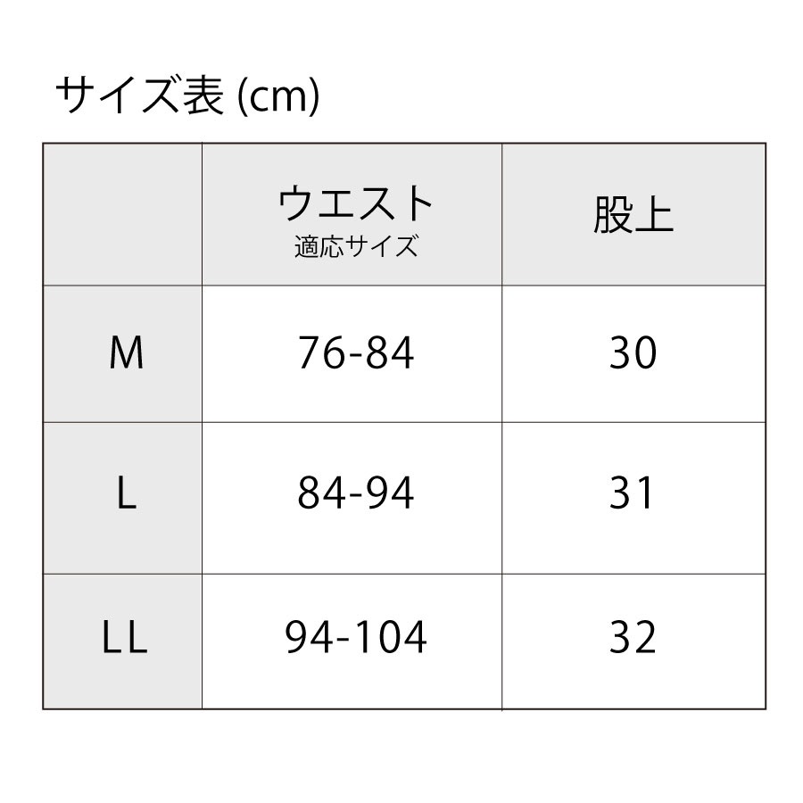 | サイズ | 適応ウェスト | ヒップ | 股下 |