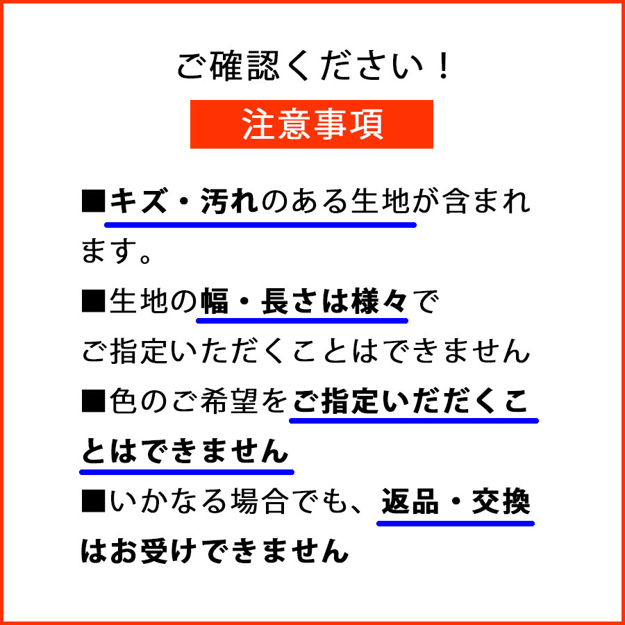 はぎれ生地は、織りキズや汚れ、大きなネップが含まれる場合がございます。