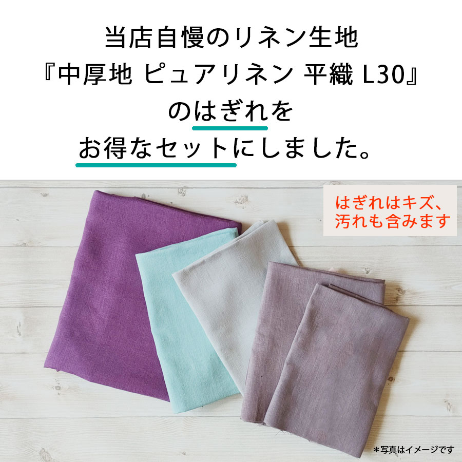 「中厚地ピュアリネン平織L30」のはぎれのお得なセットです。