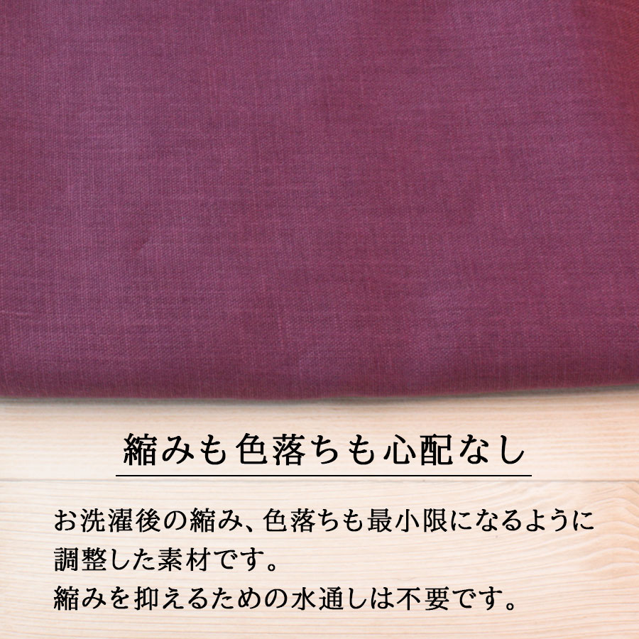 (Linen & Basic の商品につきましては縮み率は3%以内となるようにお作りしています。) - 生地の表面にネップと呼ばれる繊維のかたまりがあるものがございます。リネン生地の素朴な味としてご理解下さい。