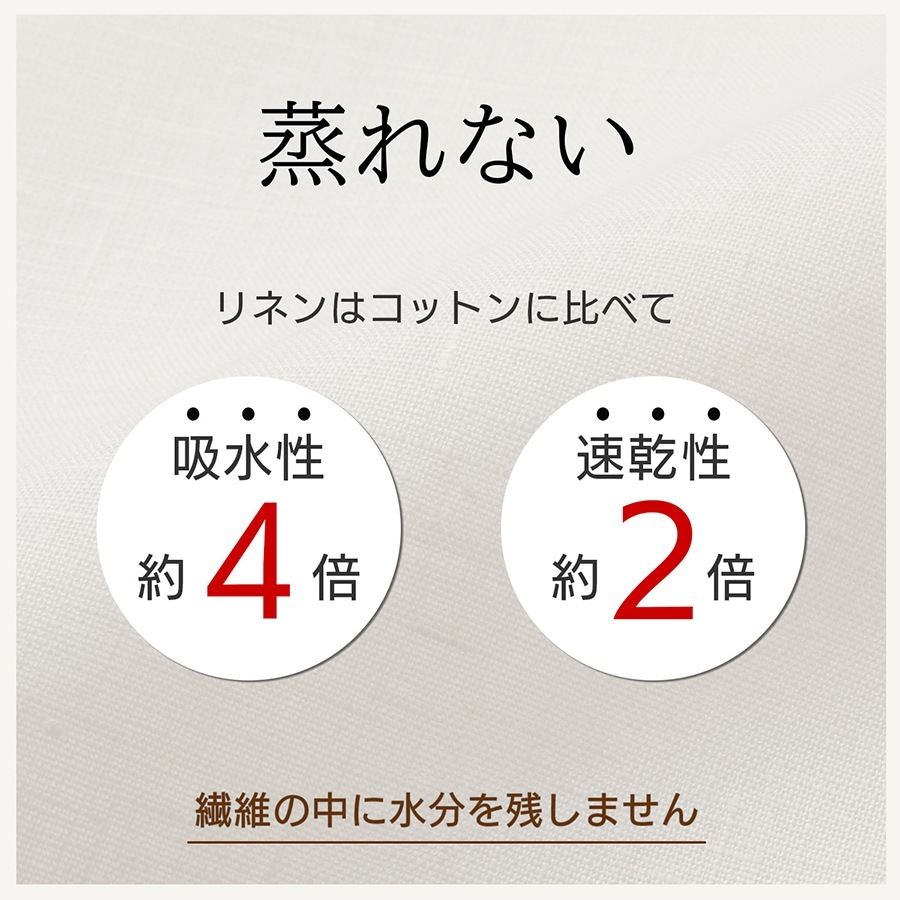 ・リネンはコットンに比べて、吸水性は約4倍、速乾性は約2倍といわれています。