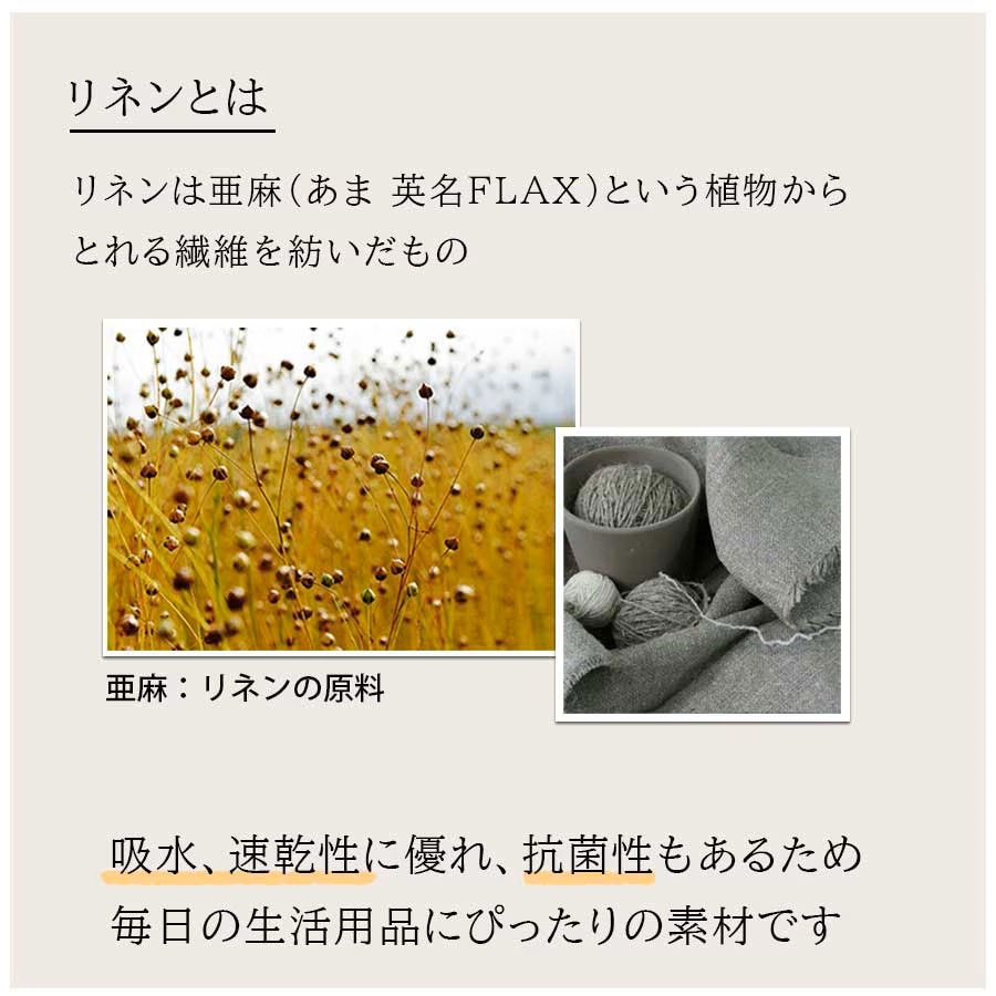 (Linen & Basic の商品につきましては縮み率は3%以内となるようにお作りしています。) - 生地の表面にネップと呼ばれる繊維のかたまりがあるものがございます。リネン生地の素朴な味としてご理解下さい。